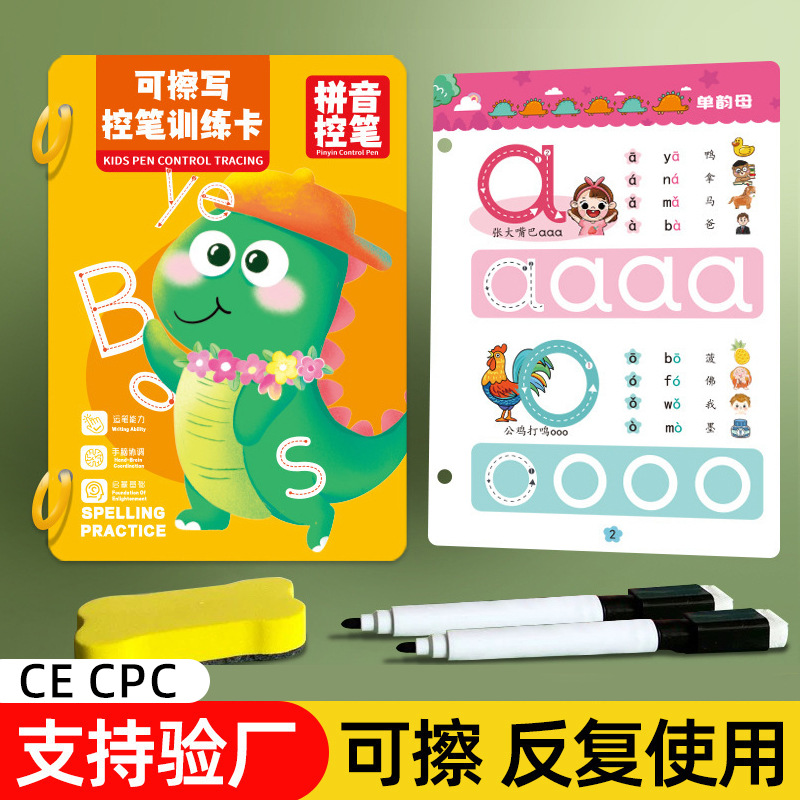 カスタマイズされたペンコントロールトレーニングブック、子供の早期教育の入門レベルの基本的な書道練習、幼稚園の消去可能な練習カードをサポートします。