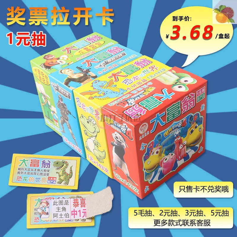 子供の頃のレトロ一元抽選カードが引き裂かれてお金を引き出します。