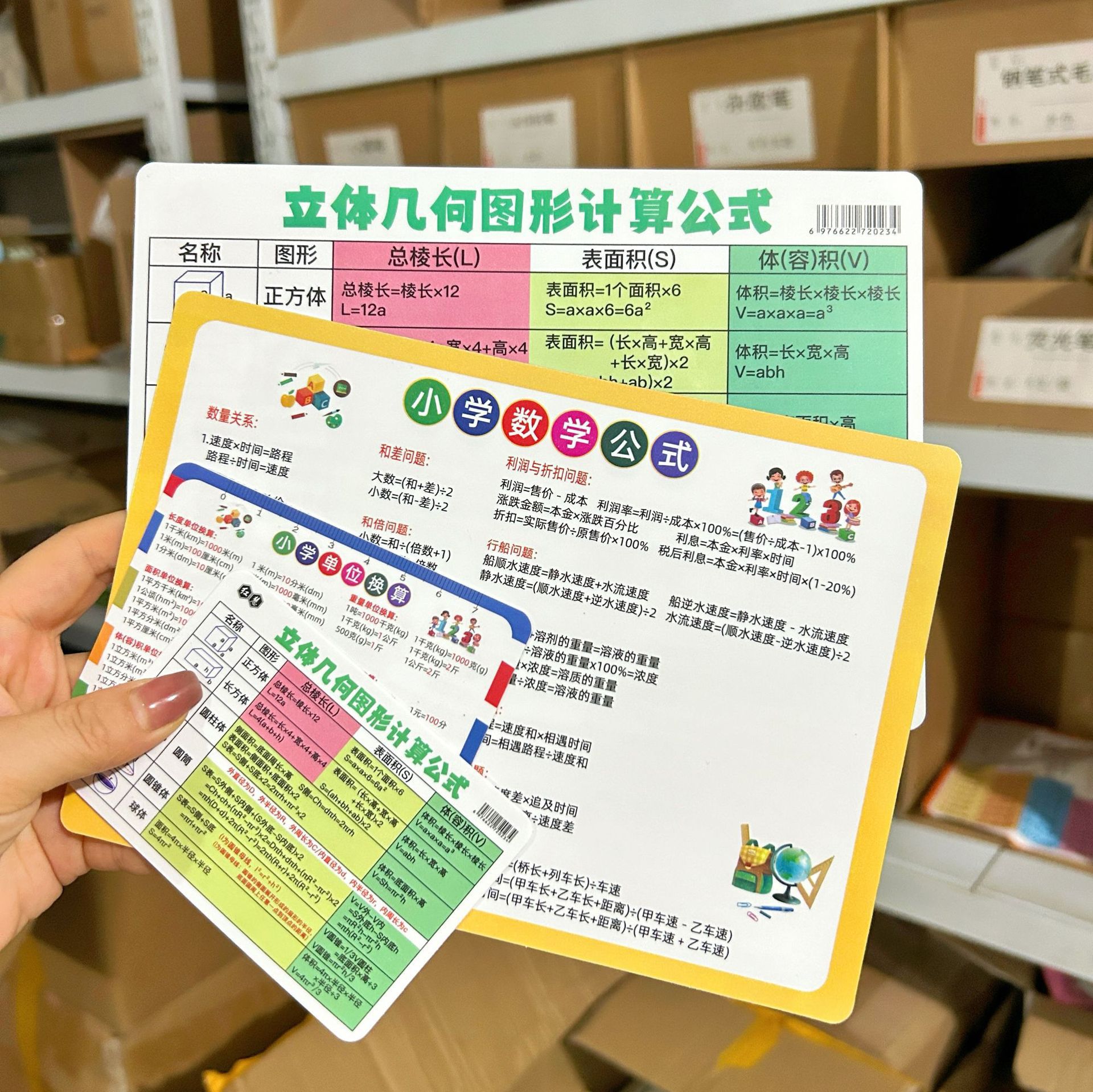 小学生数学1~6年生向け立体幾何図形計算公式集単位換算知識ポイントカード