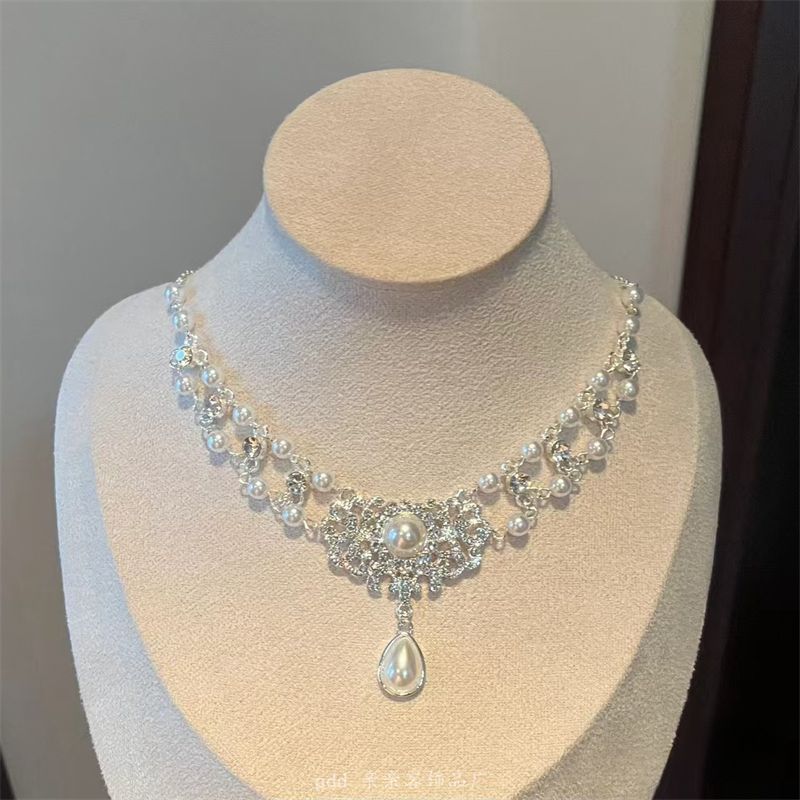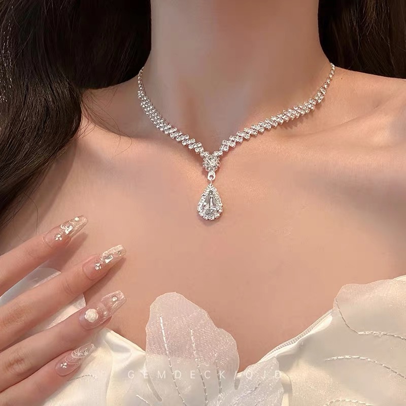 フルダイヤモンドウォータードロップライト高級ネックレスニッチデザインチョーカー優しい純粋な欲望鎖骨チェーン女性の高貴な娘ネックレス
