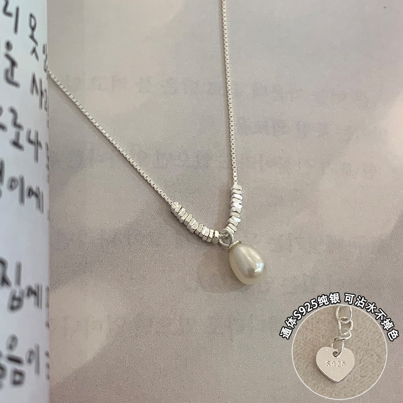 Doree スターリングシルバー天然真珠ブロークンシルバーペンダントネックレスレディース 2025 新しいライト高級ニッチ鎖骨チェーンアクセサリー