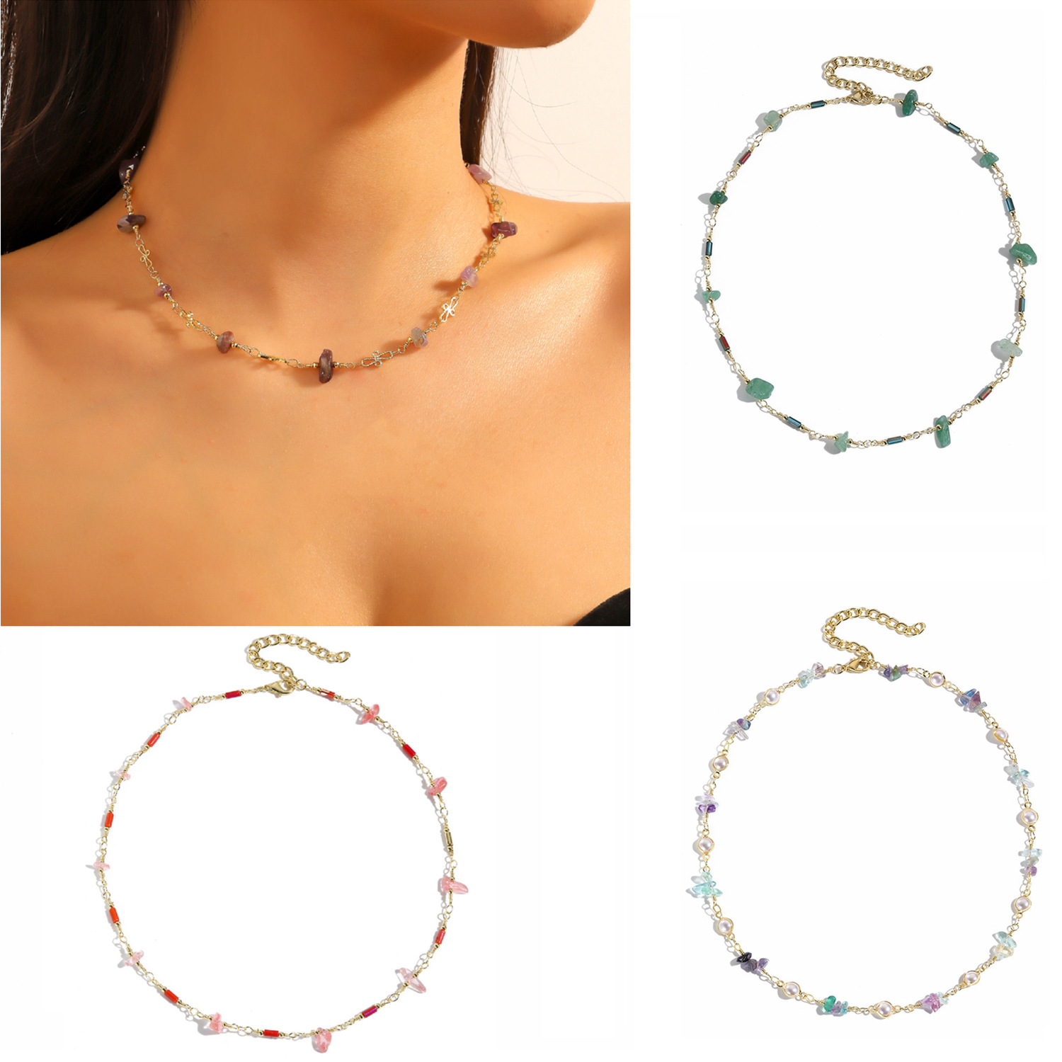 水晶の石のペンダントの銀のネックレスのフリンジネックレスの天然の小さい大衆の高級な精巧なファッションは鎖の骨の鎖の女性に似合います。