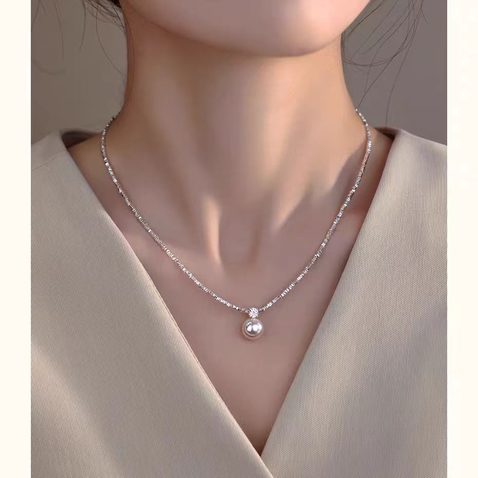 999足銀単ドリルキラキラ真珠鎖骨ネックレス大衆デザイン軽贅沢気質高級彼女の親友プレゼント