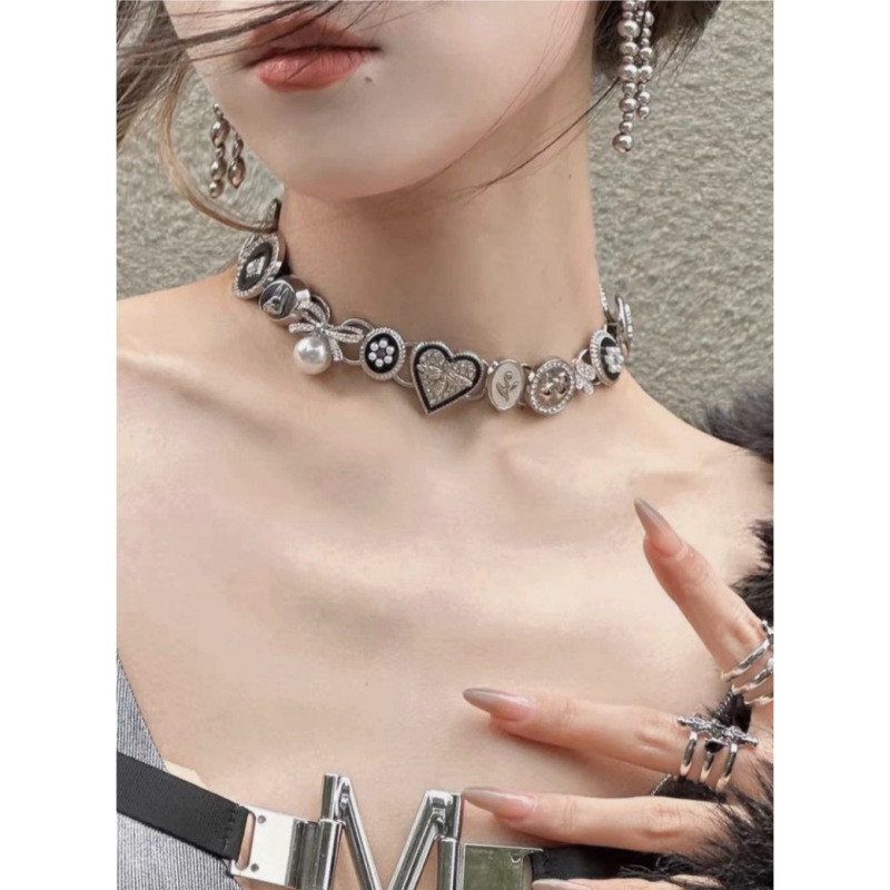 金属ボタンの愛のネックレスは色の復古の甘いクールな風にぶつかって、ドリルのパンクの鎖のクラブのギャルの純粋な欲風を入れます。