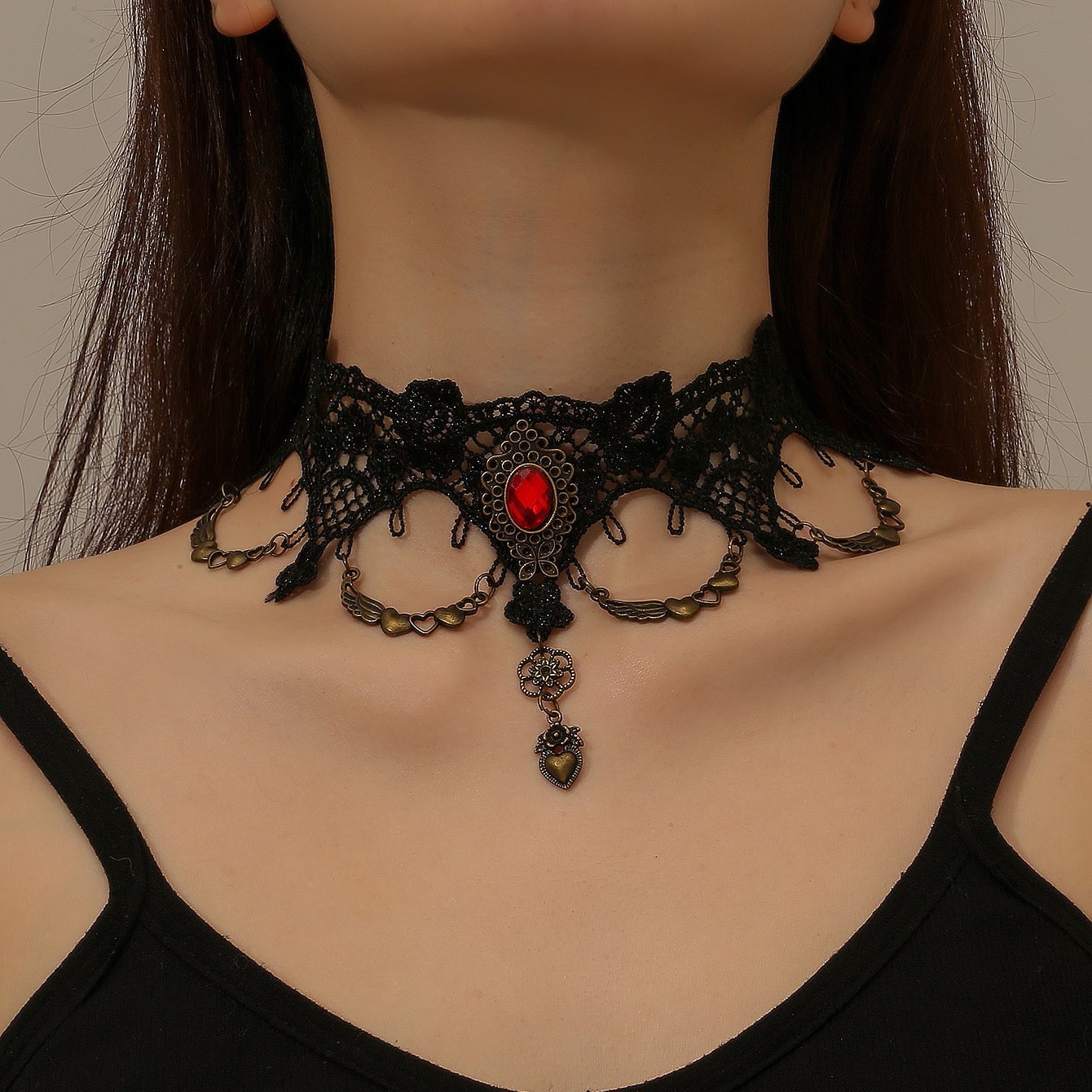 欧米の国境を越えたハロウィーンの暗黒パンク金属首輪には、甘いクールなヒップホップ風のベルベットのネックレスが女性を飾っている