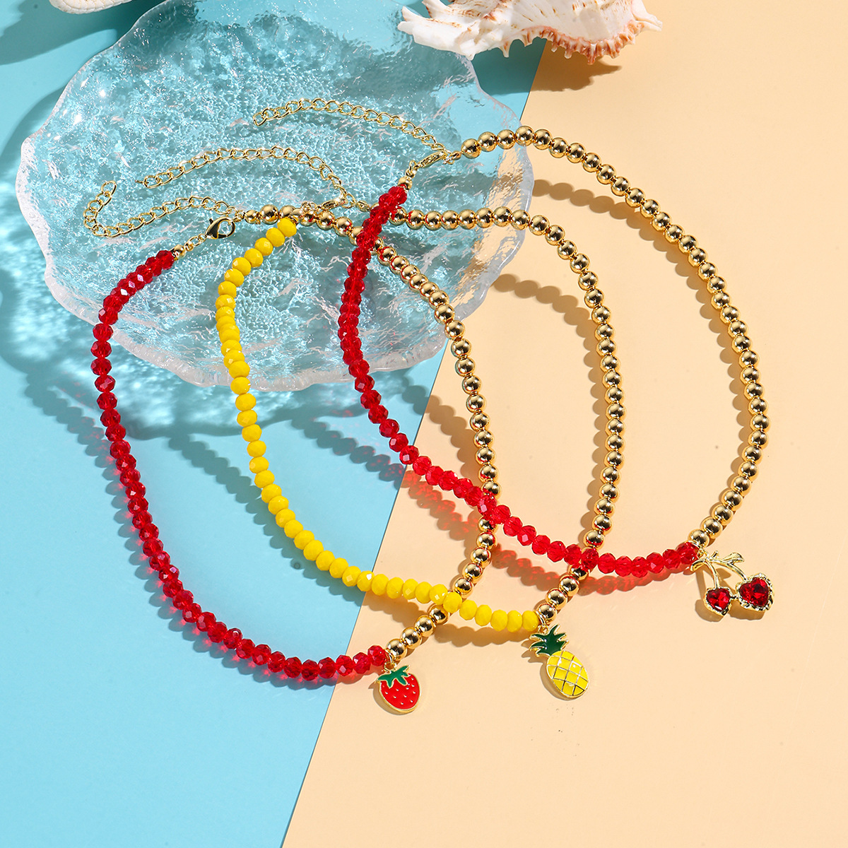 欧米の越境ファッションのネックレスの女性の小清新な夏のかわいい果物のイチゴのパイナップルの手作りの数珠の鎖