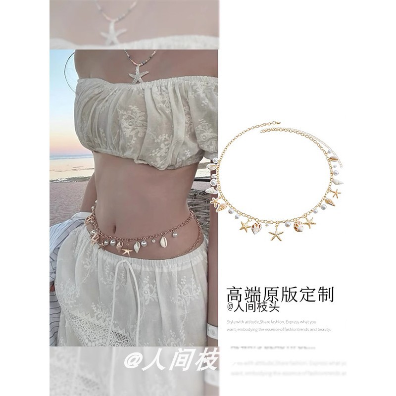 ビーチ休暇は神器 ~ 貝殻海星金属腰鎖飾り女真珠海螺流蘇ベルト飾り