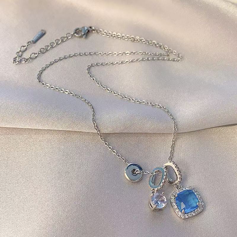 海藍方糖ジルコンのネックレス女性ファッション気質高級感があります。