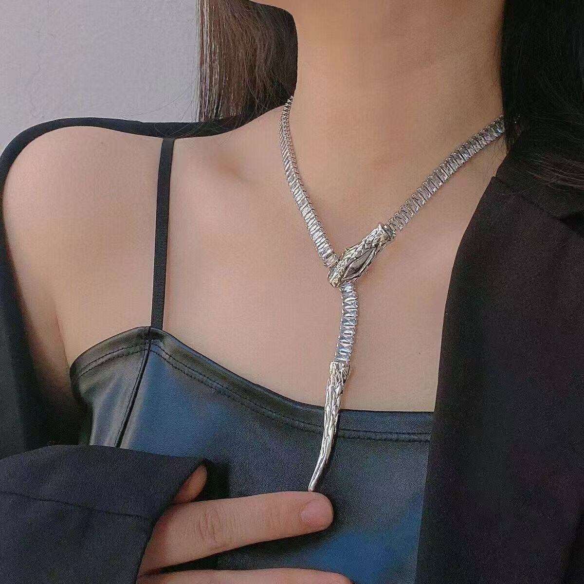 スター同モデル欧米高級感冷淡風蛇形ネックレスファッション百合女神鎖骨鎖蛇骨首輪