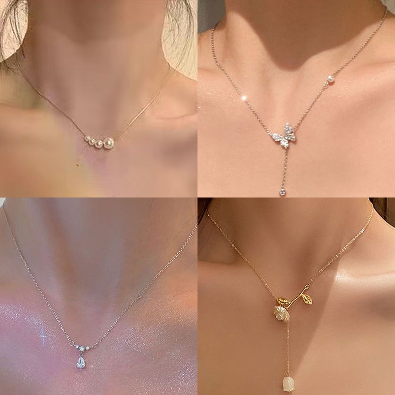 グラフS925シルバー電気メッキホワイトゴールドクラシック2個5個セットファントムバタフライGFネックレス女性向け個性的鎖骨ペンダント
