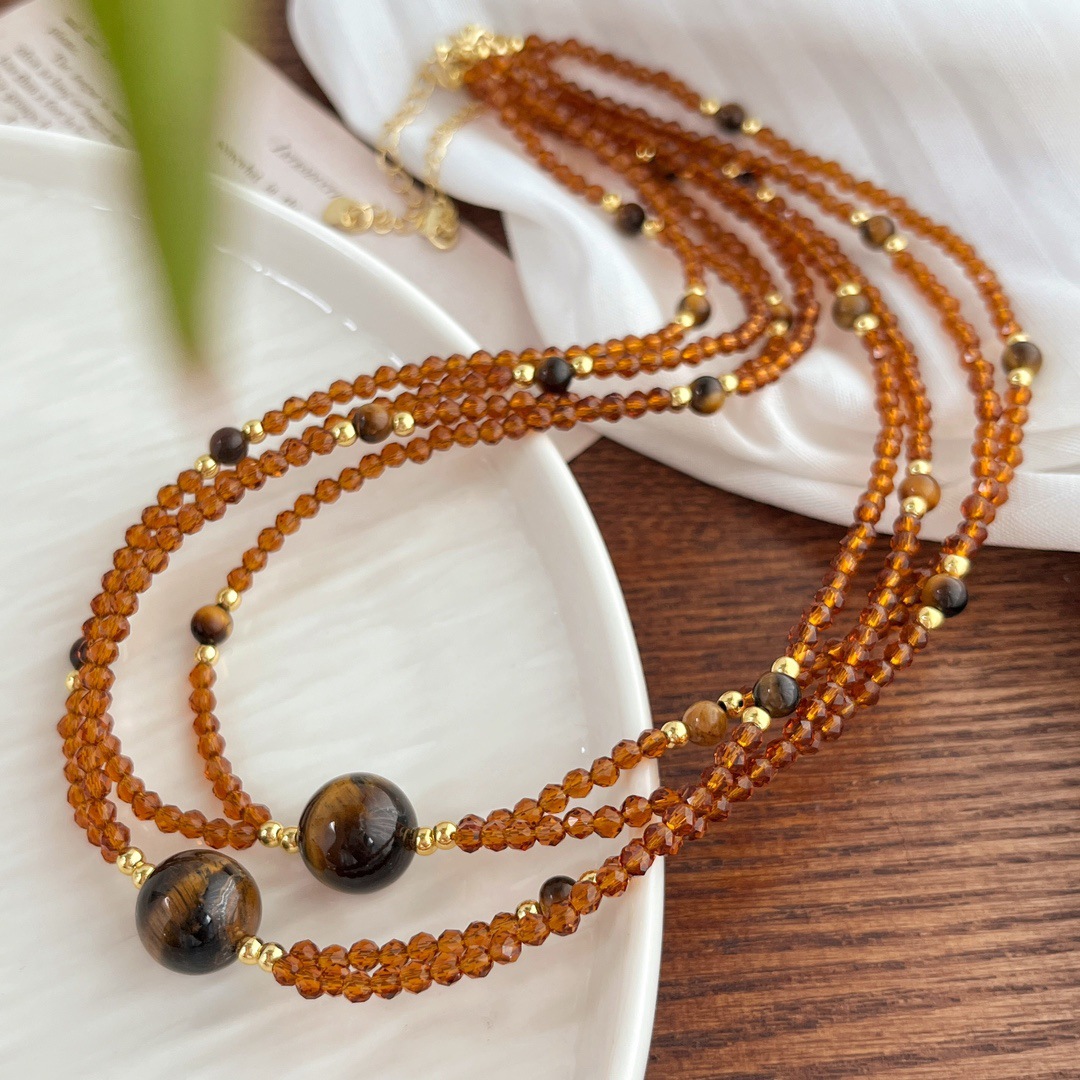 国風レトロ秋冬美ラード天然虎眼石二重人工フェンダーデザイン感鎖骨チェーンネックレス