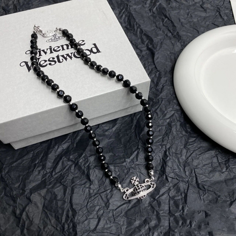 西太后クラシック土星水晶黒真珠ネックレス女性レトロ気質黒瑪瑙真珠鎖骨チェーン高バージョン