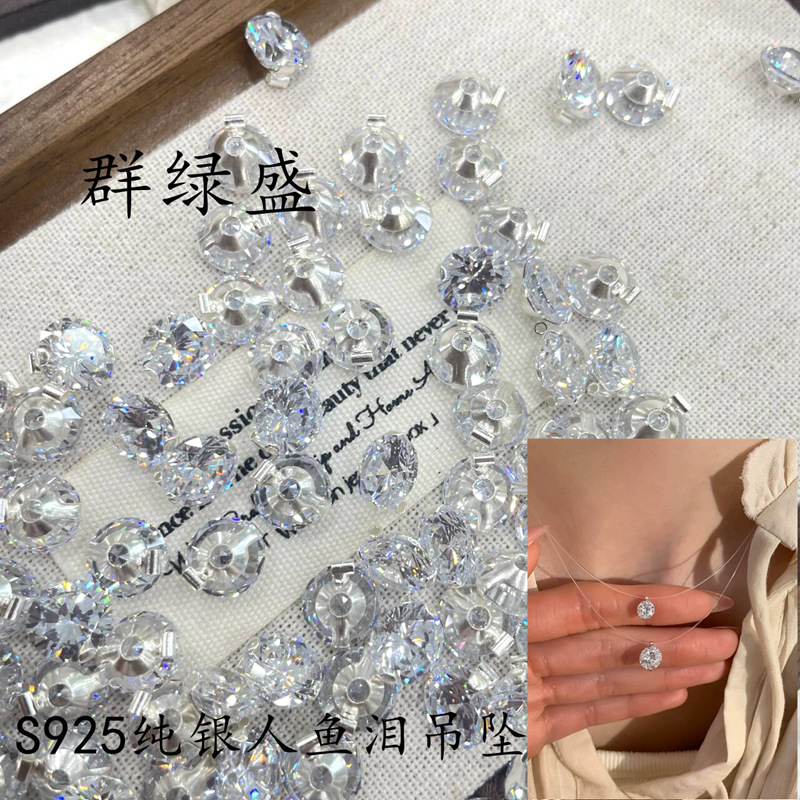 Qunlusheng S925 スターリングシルバー Sun Li Hu Manli 同じスタイルのマーメイド ティア ペンダント象嵌ジルコン目に見えない釣り糸鎖骨チェーン