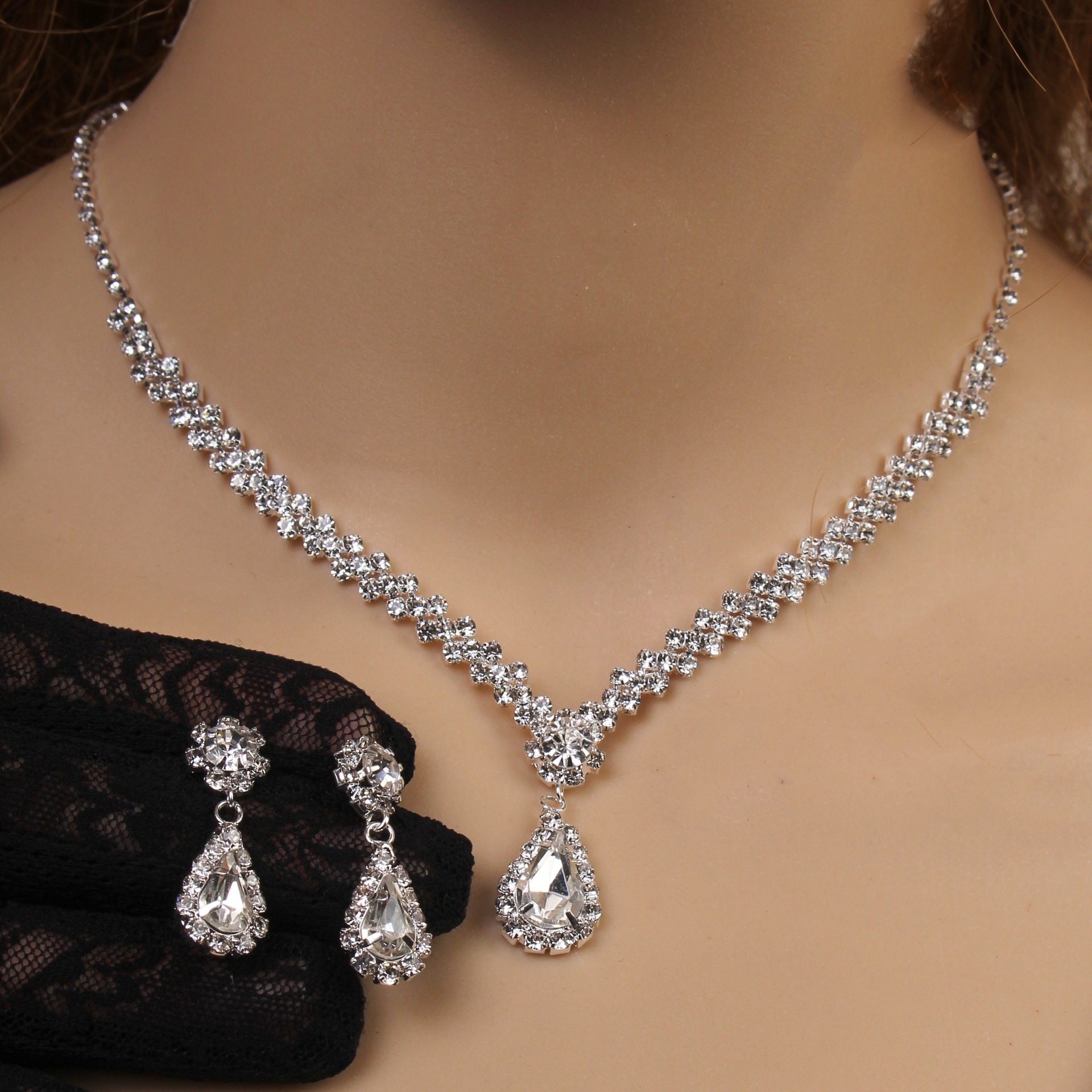 ダイヤモンドを入れて交差する水滴のv形のフリンジネックレスのピアスの2つのセットの欧米の小さい大衆の軽豪華な気質の鎖の鎖の卸売り