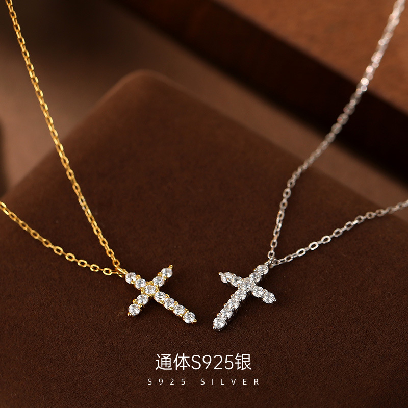 女性用スモールクロスネックレス、ニッチ、ライトラグジュアリー、ハイエンド、シンプルな気質、コールドスタイル、チタン鋼チェーン、色褪せしない鎖骨チェーン