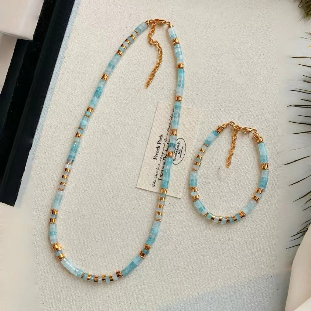 新中国式ネックレス4mmカラー碧璽ビーズネックレスアクセサリー女性気質海藍宝円珠鎖鎖卸売り