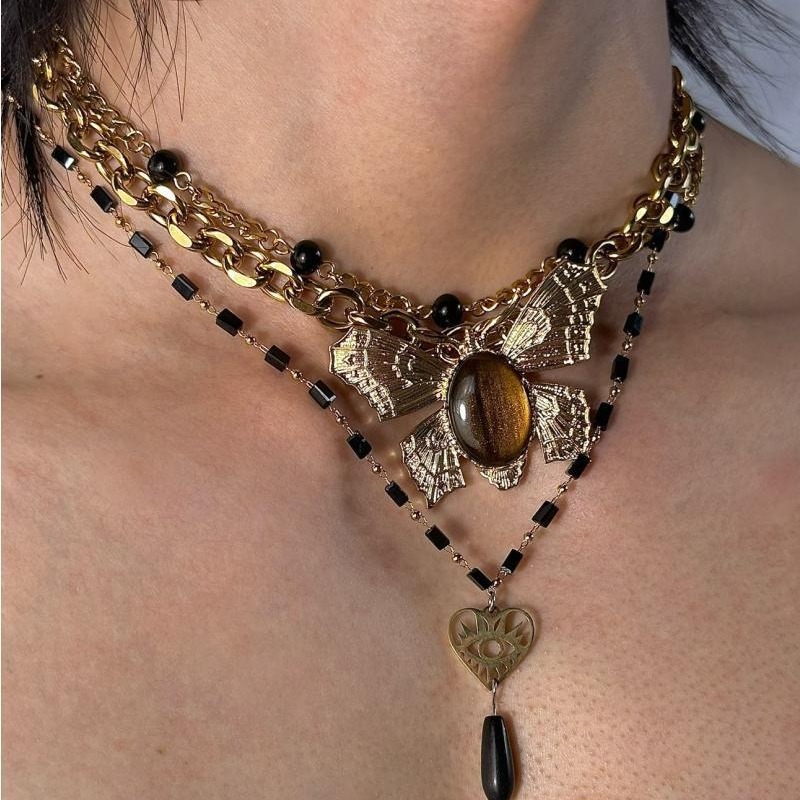 中国式パンク蝶チタン鋼のネックレスは洗練されたレトロで鎖骨鎖をかぶっている