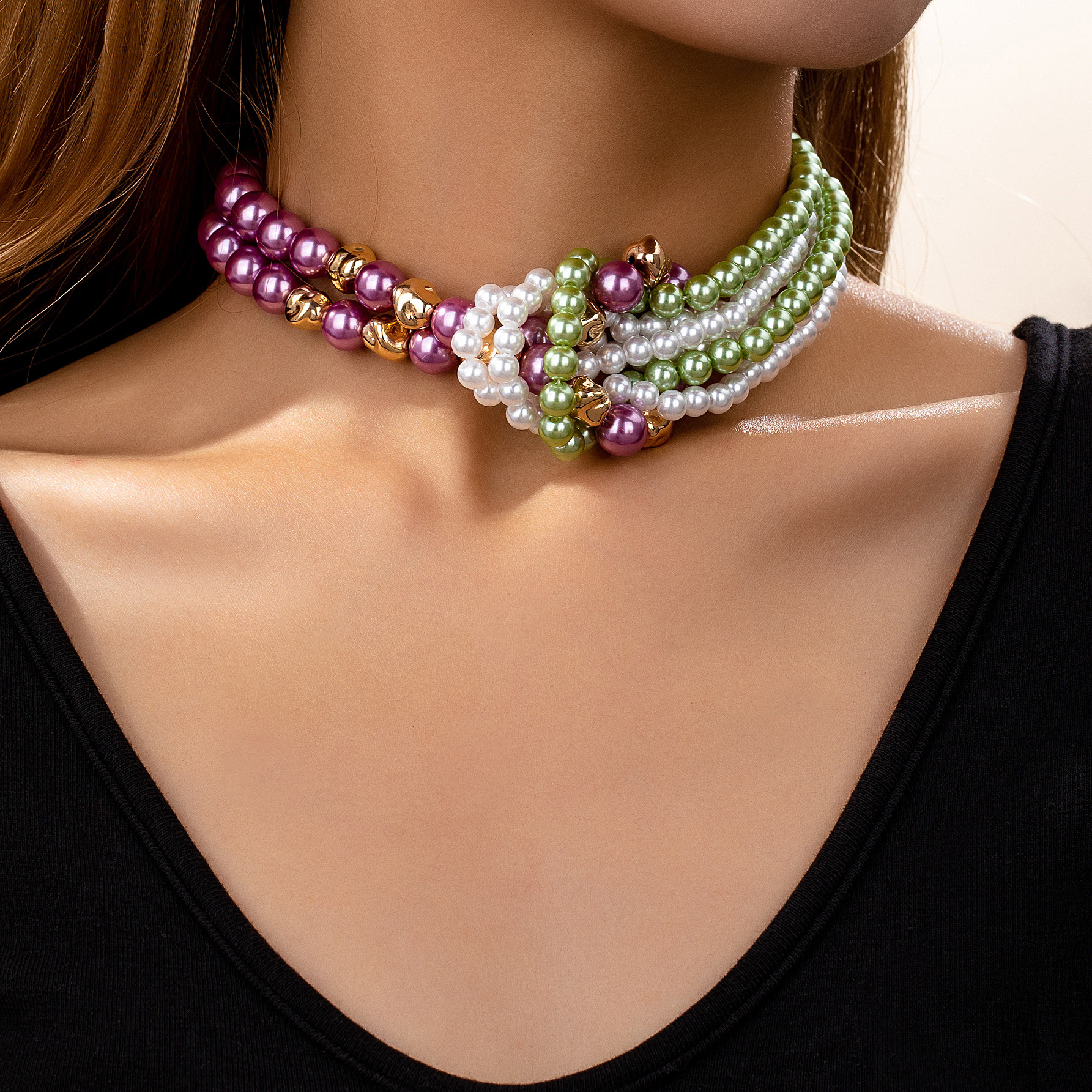 クロスボーダーの人気ファッションの誇張した個性的なカラーの多層は真珠をまねてネックレスの女性の高級感を重ねて街の撮影に適します。