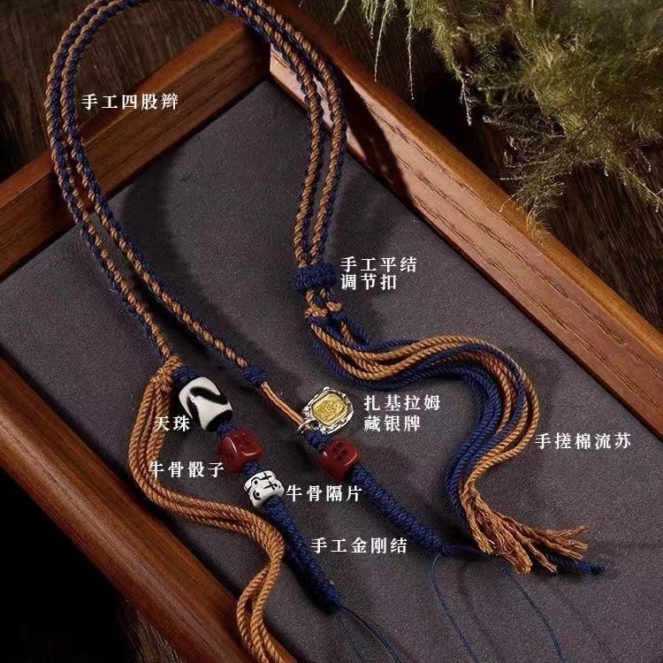 チベット式の手で綿のネックレスの紐をこすります。天珠を横切ることができます。