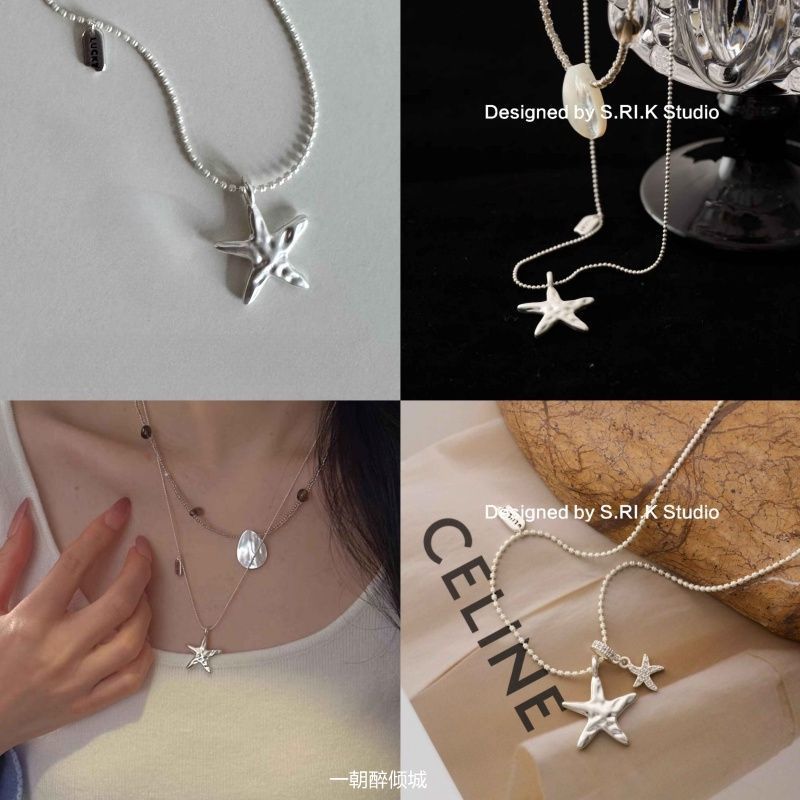クーニングは色褪せない! ヒトデ貝のチタン鋼二層ネックレス、ハイエンドのリゾートスタイル、シャワー時に外す必要のない鎖骨チェーン