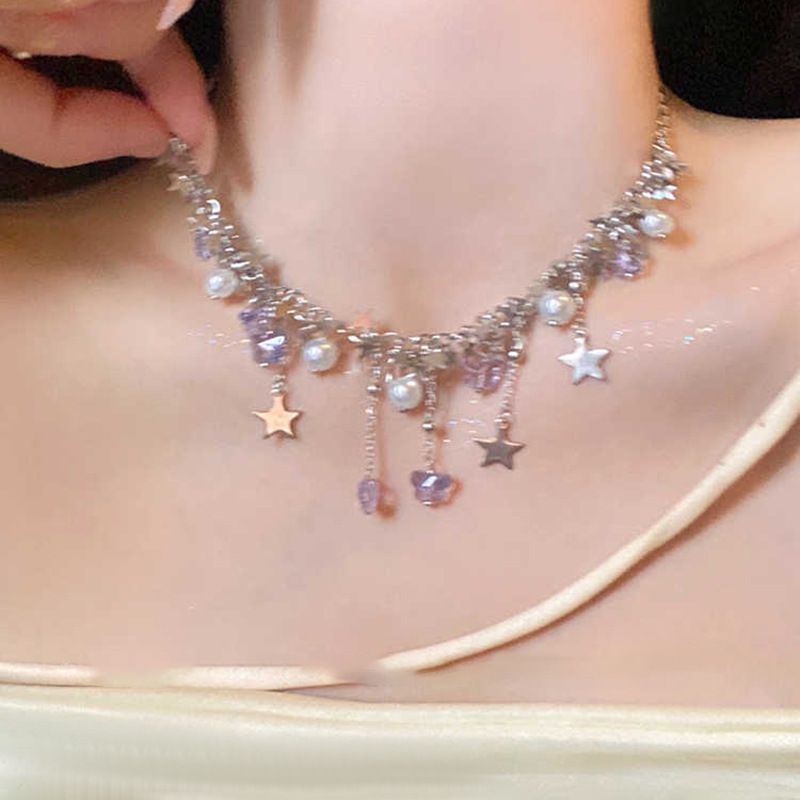 [オーシャンスター] トレンディでクールなホットガールピンクと紫のヒトデフラワーネックレスレディースレトロヘビーデューティライト高級鎖骨チェーンアクセサリー