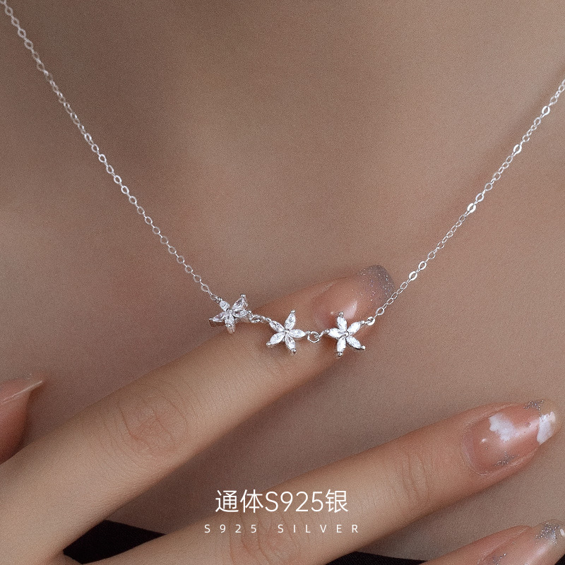 925純銀の小さい花のネックレスは軽くて豪華でシンプルです。