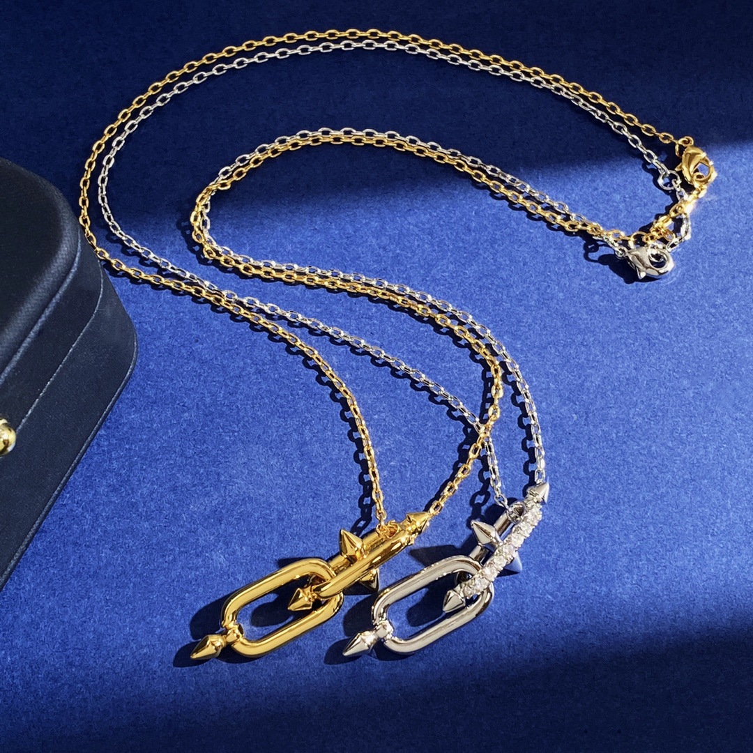 新型ファッションは三叉の金属に合わせて半ドリルのリベットの円錐形の環をつけてチェーンの立体のペンダントのネックレスを掛けます。