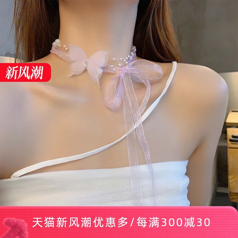 蝶の私有真珠ジルコン鎖女性潮軽豪華通勤アクセサリー首鎖ネット赤気質ネックレス
