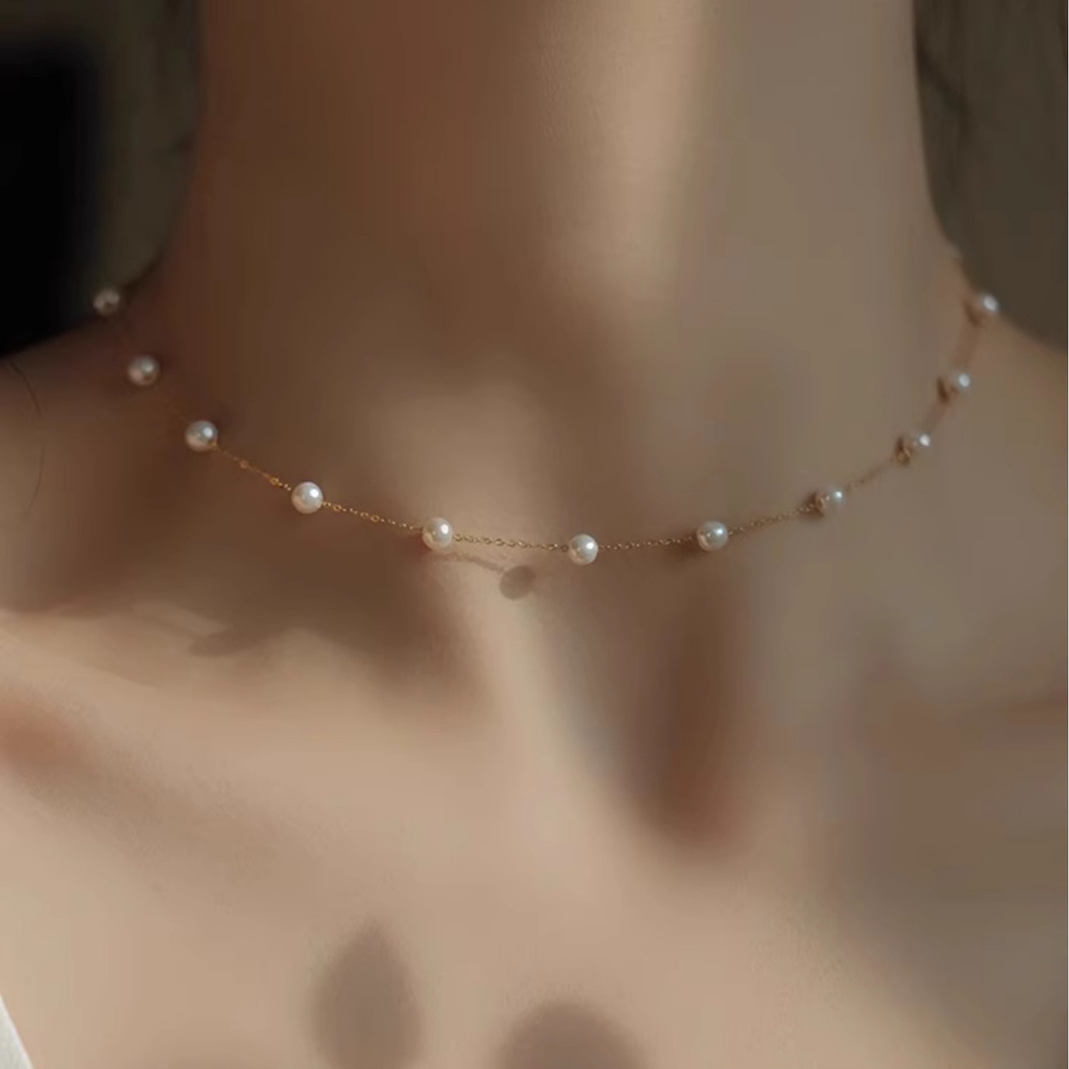 色あせしないチタン鋼パールネックレススペーサービーズショート鎖骨チェーン女性の夏のミニマリストネックレス 2025 新しいスタイル