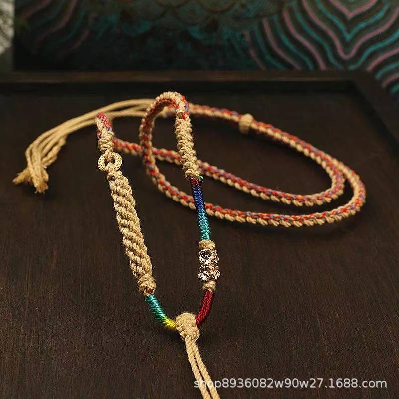 チベット手織りロープタンカペンダントロープ天珠仏ネックレスロープ蜜蝋翡翠ペンダントロープカラフルなロープ