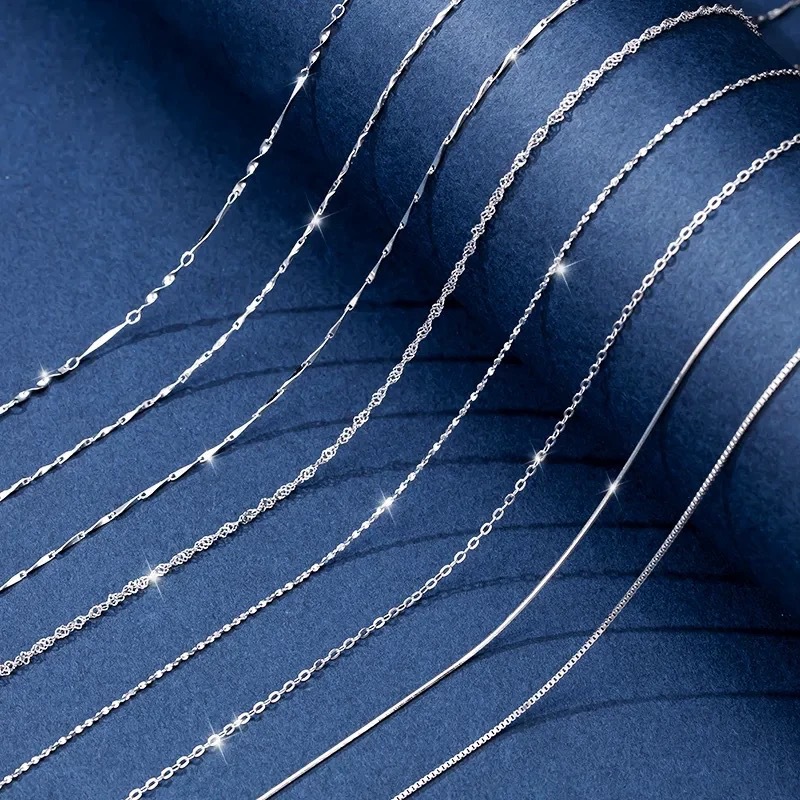 S925純銀のネックレスの女性の素の裸のチェーンの箱のショパンの元宝の水波の蛇の骨の十字の瓜の種の満天の星の鎖