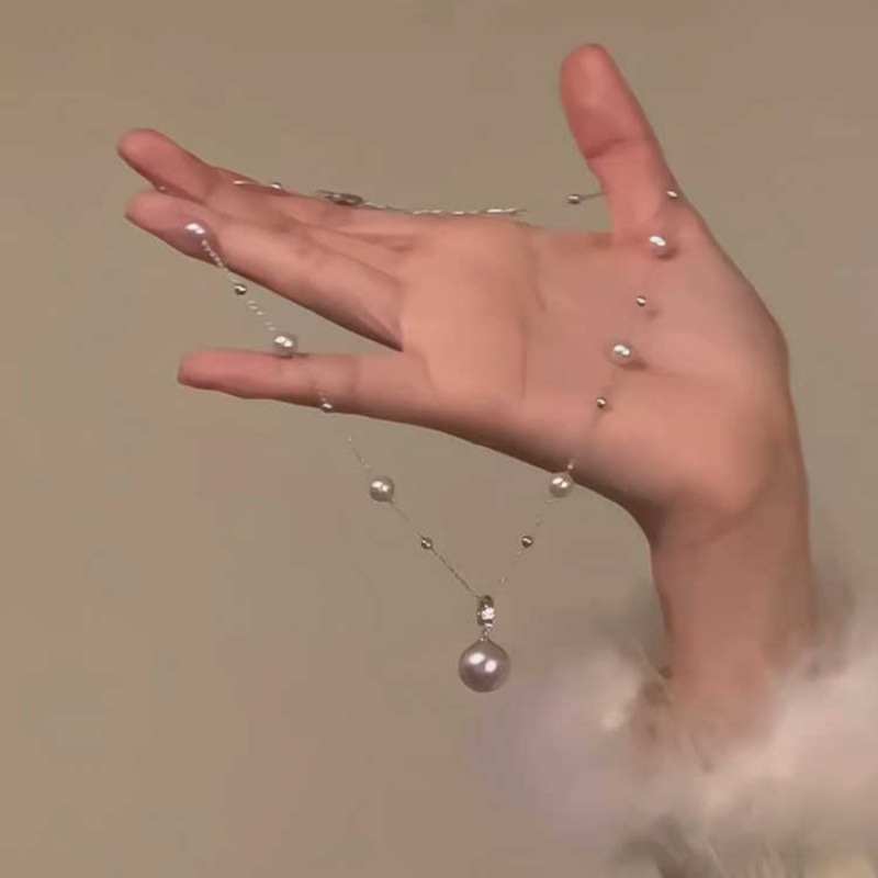 チョーカー s925 シルバークラッシュシルバーパール鎖骨チェーンレディースニッチデザインイントレンドシンプルで多用途な新しいネックレス