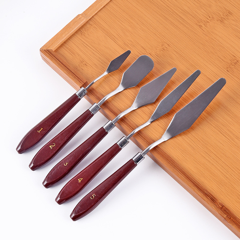 油絵のスクレーパーの絵の具の刀は刀の平頭のスクレーパーの先を選んで刀の学生の木の柄の重彩の油絵の棒の絵の具の刀を選びます。
