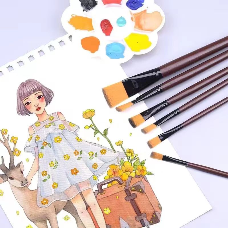 ✅ 820 ナイロン毛ガッシュ油絵筆アクリル水彩筆ダブルサイズ子供用アートペイント筆セット 6 個