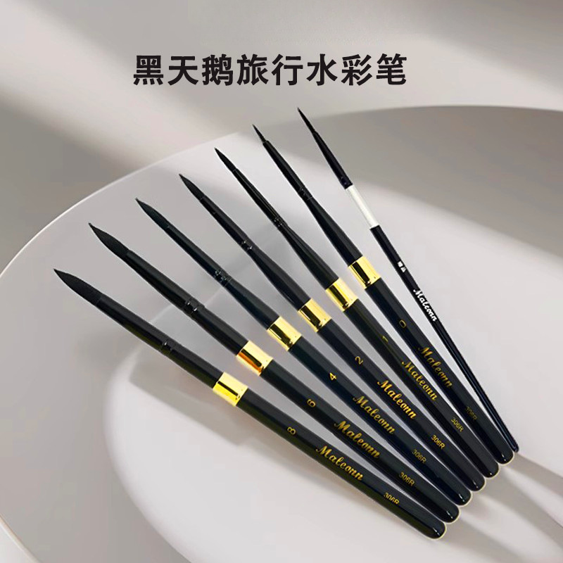 ブラックスワン水彩ペン トラベルサイズ ポータブル No.6 No.8 アートガッシュブラシ リス毛 赤太
