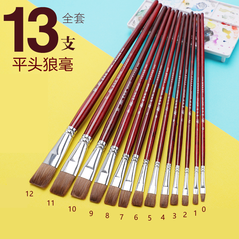 ウールガッシュ水彩アクリルブラシ初心者羊尾平ブラシ学生試験シェーディングブラシペイントブラシ