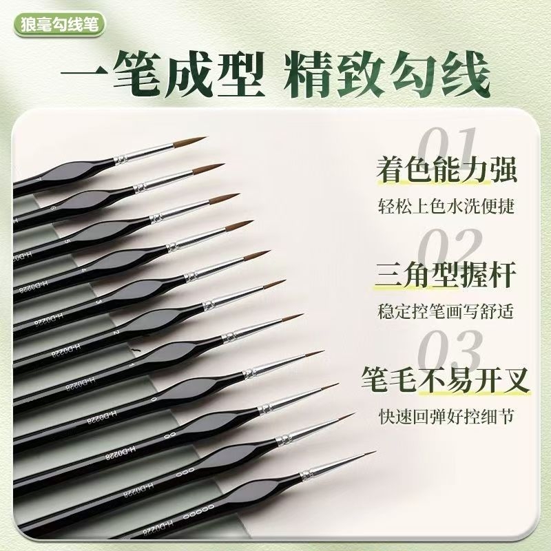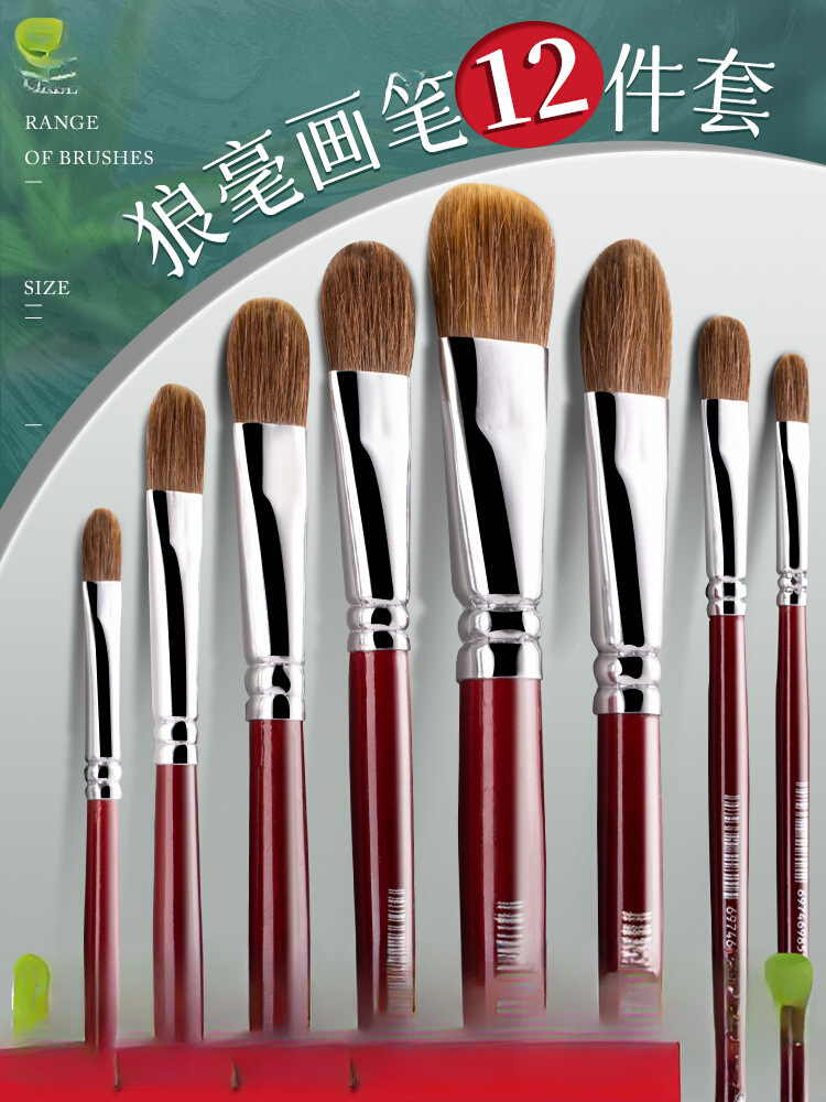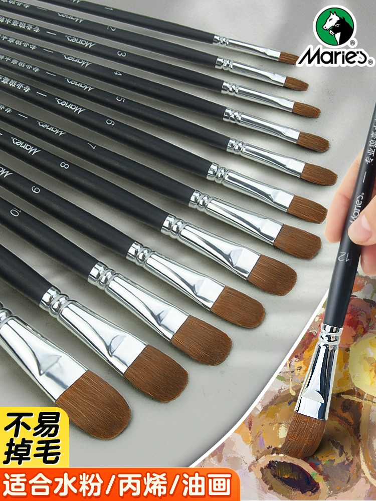 ✅ H985 モパス フラットヘッド ウルフ ヘア ウォーター チョーク セット 初心者用水彩ペン オイル ペイント ブラシ アクリル ペイント