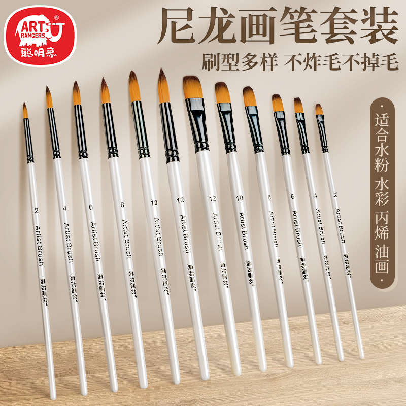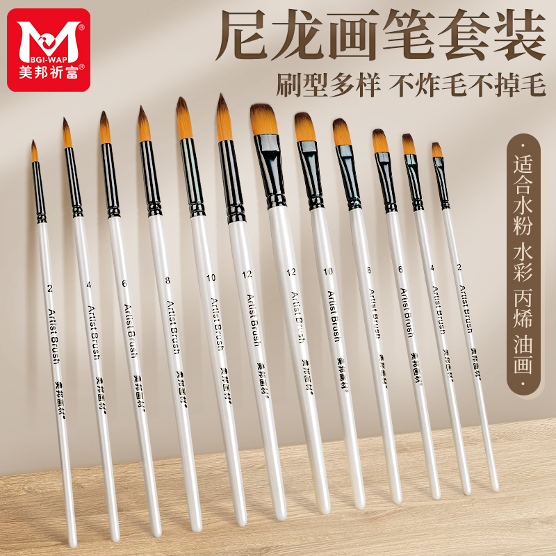 ナイロン毛油絵筆ガッシュ水彩初心者学生試験ペンフラットヘッド尖ったアクリルアートペンセット