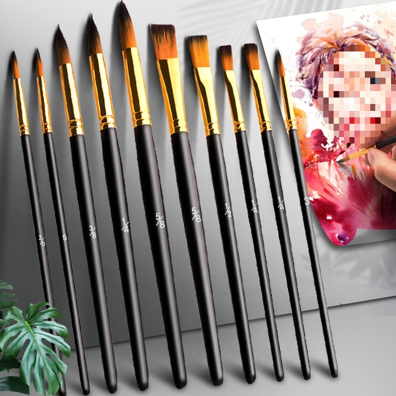 10本入ブルーロッドナイロン毛水粉水彩画筆セット美術学生ブラシアクリル絵の具美