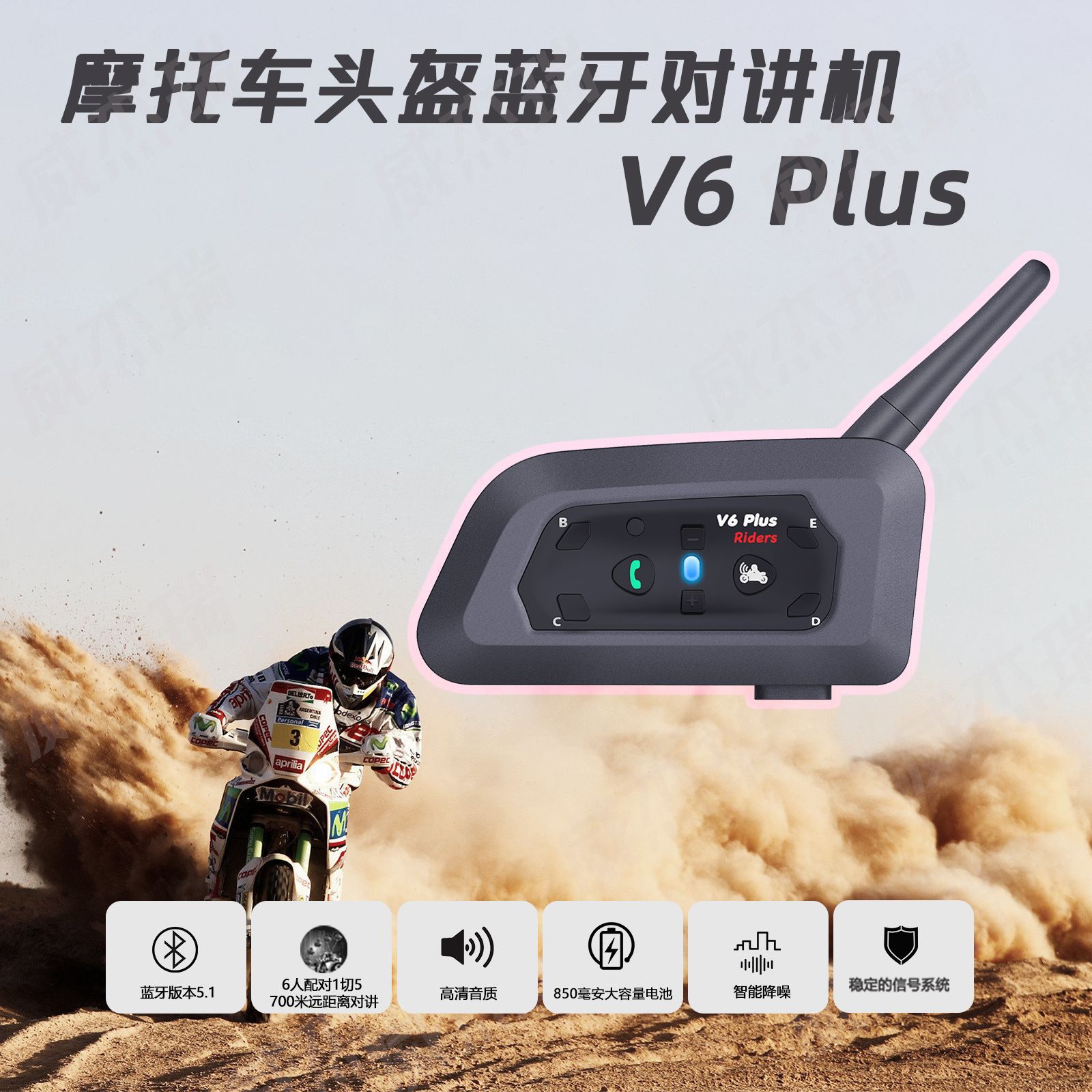 V6 proバイクライディング専用ヘルメットブルートゥースインターホンヘッドホン1切5全二重ブルートゥースインターコムv6 pro