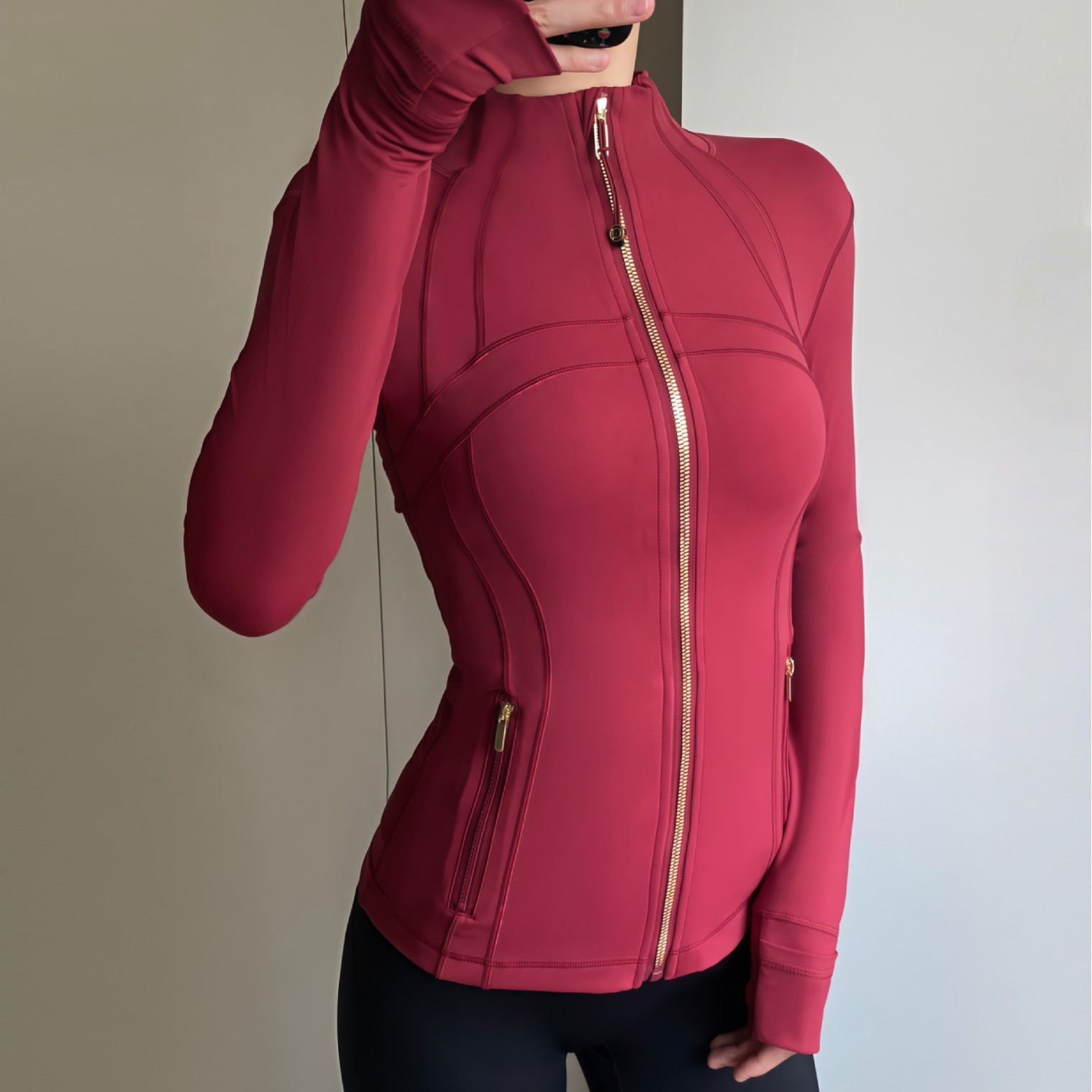 ルルオリジナルラベル Define スタンドカラージャケット ゴールドジッパー ヨガウェア トップス フィットネスウェア 長袖ジャケット レディース スリムフィット