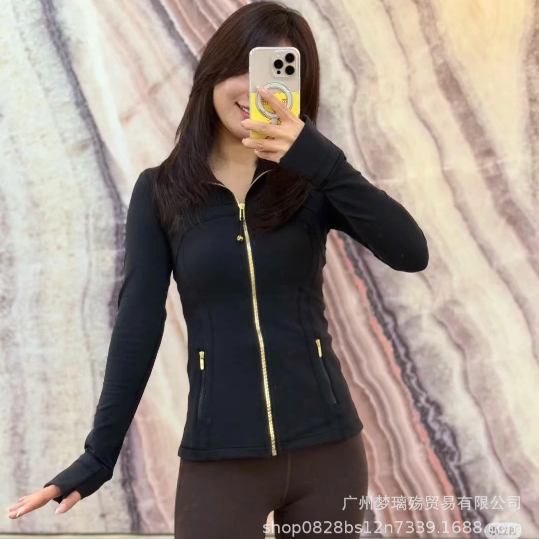 Luluオリジナル .comオリジナルゴールドジッパーヨガ服スタンドカラージャケットトレーニング服長袖ランニングスポーツジャケット