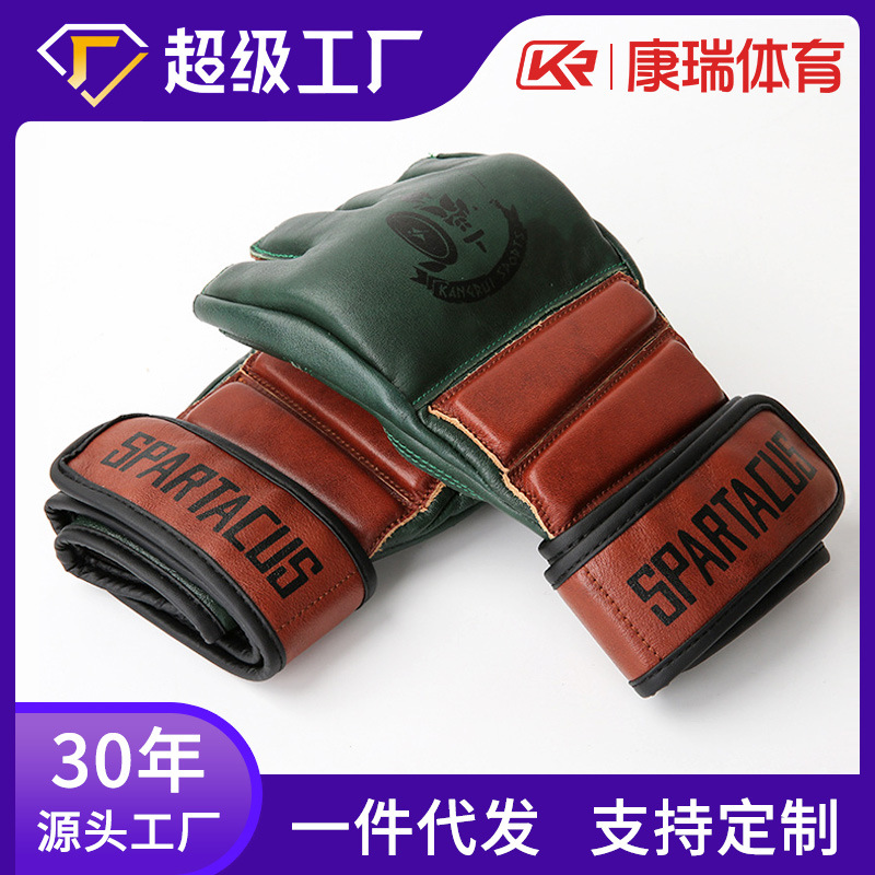 康瑞スパルタMMA手袋半指格闘訓練牛革手作りボクサー捺染復古ボクサーメーカー