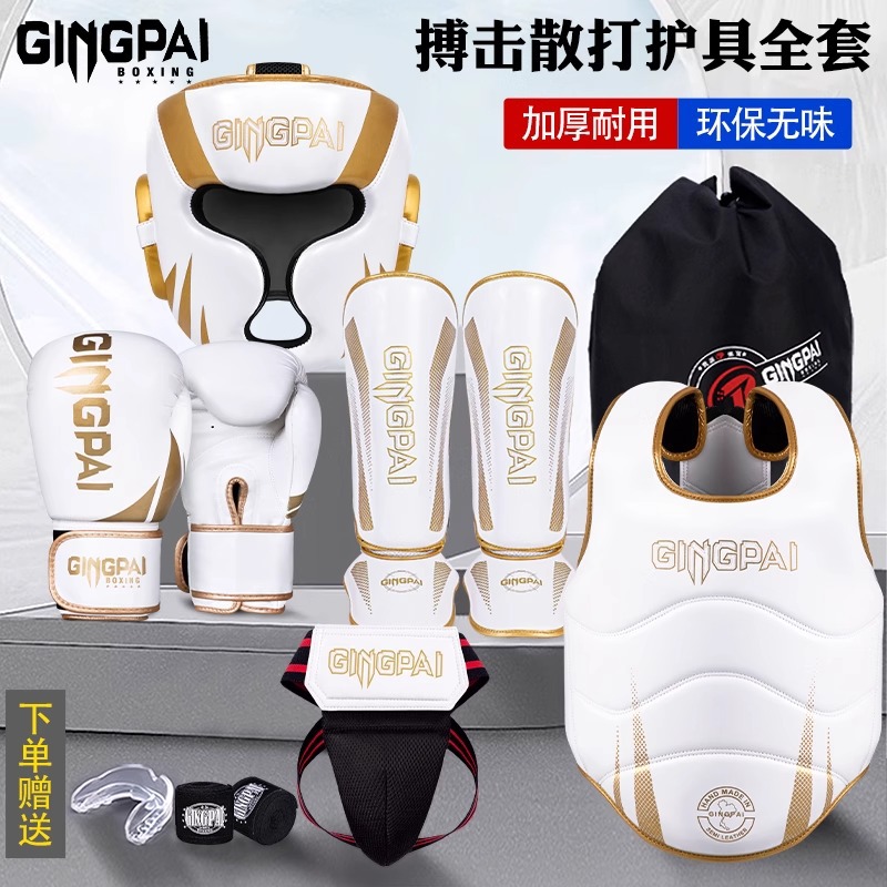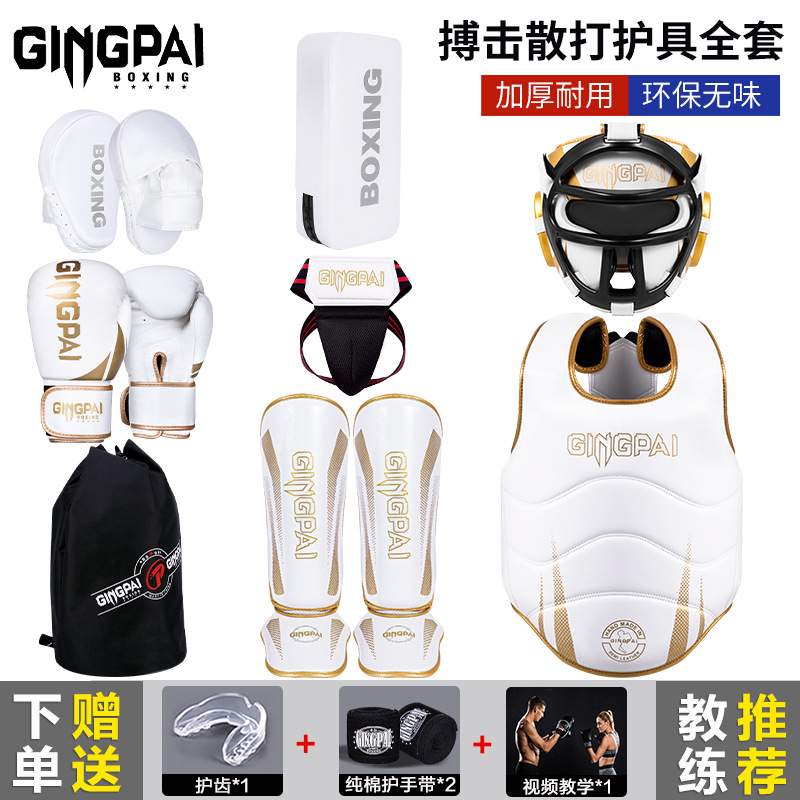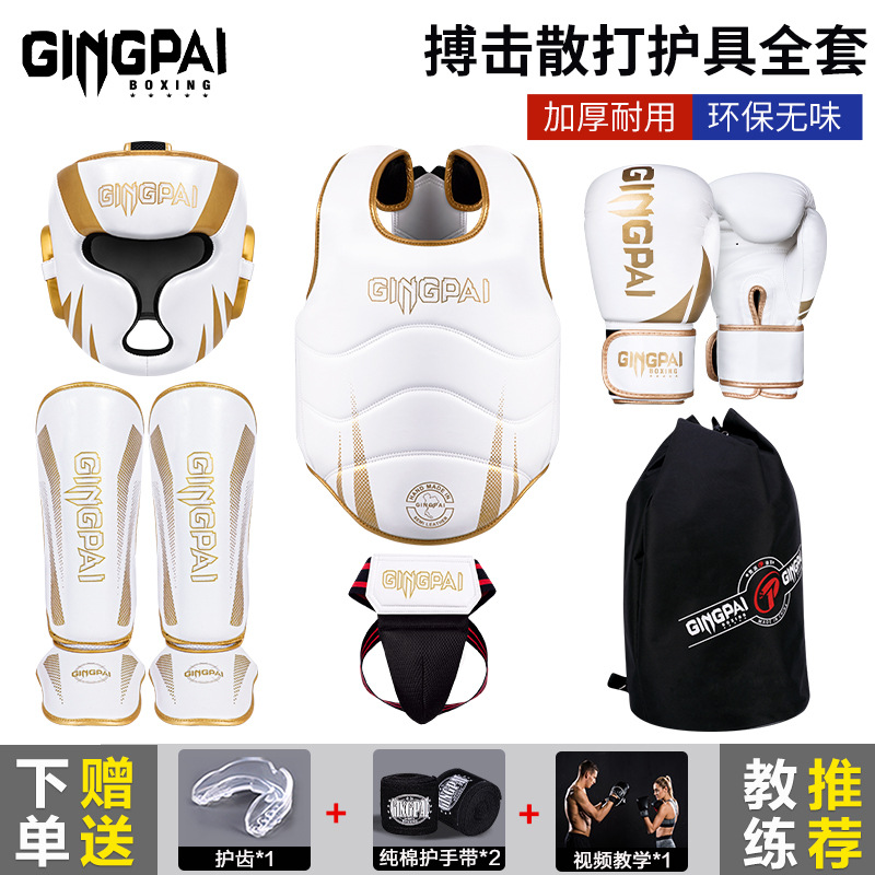 子供用格闘サンドボクシング保護具、男性と女性のトレーニング大人用スーツの完全なセット、ボクシングヘルメット、ムエタイレッグガード、胸部ガード、クロッチガード