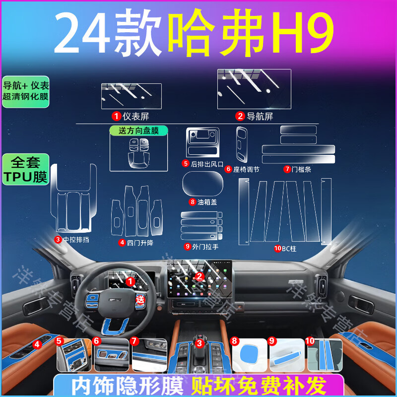 ハーフェルド H9 第二世代専用インテリアスクリーン保護強化フィルム 24枚、中央制御フィルム改造用品、ハーフェルド