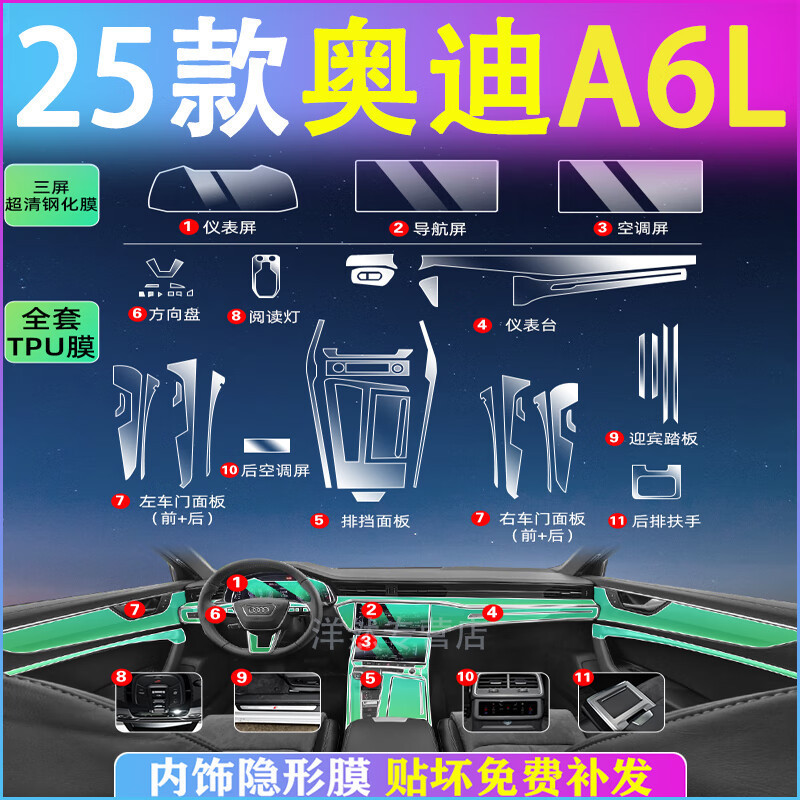 25 アウディ A6L セントラル コントロール ナビゲーション スクリーン強化フィルム 24 計器保護インテリア フィルム修正 22-23 に適しています。