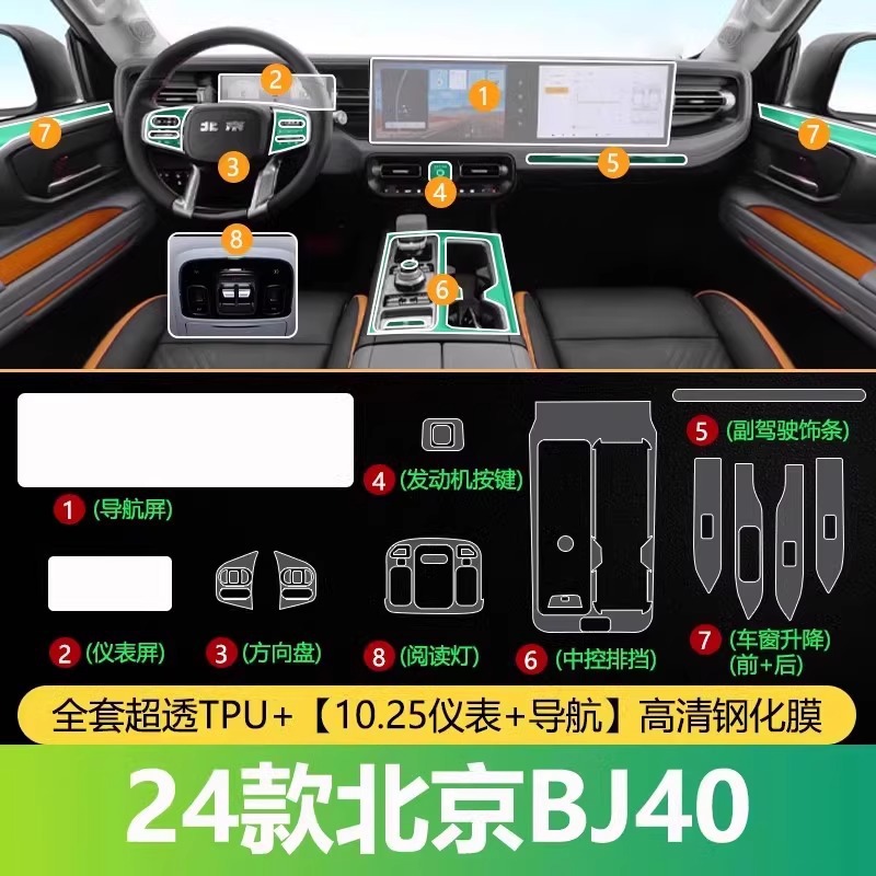 24 北京 bj40 インテリアフィルムスクリーン強化フィルム中央制御フィルム保護フィルムアクセサリー新車用品