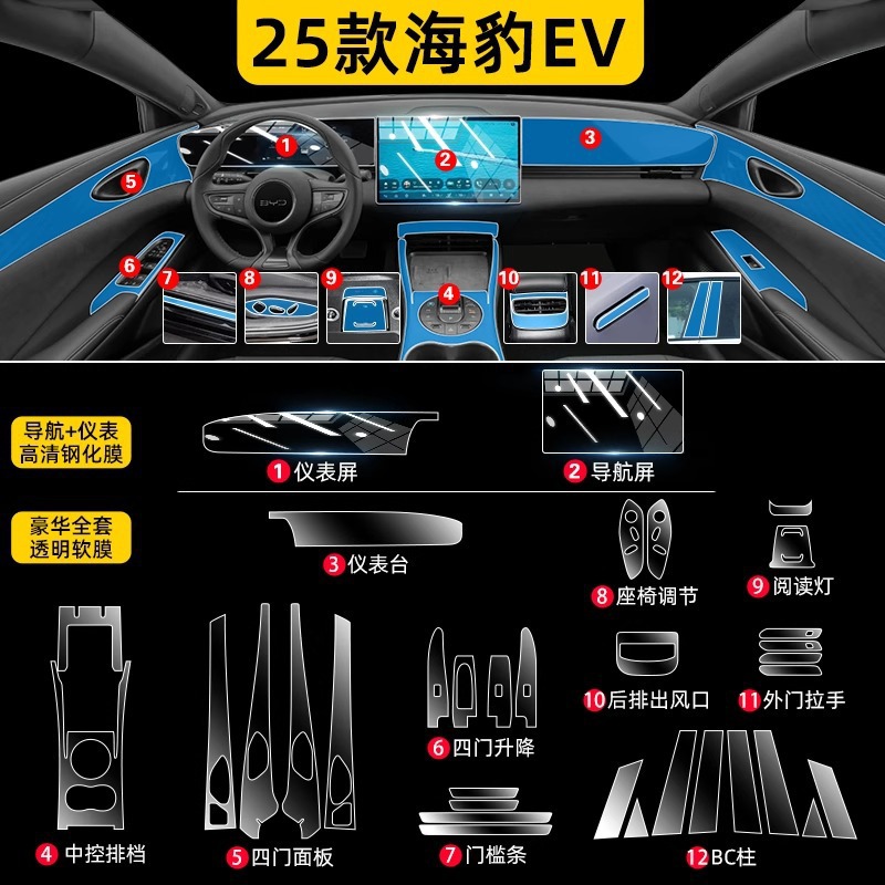 BYD シールインテリア保護スクリーン強化フィルム 25 個、中央制御フィルム、車内装飾改造用品