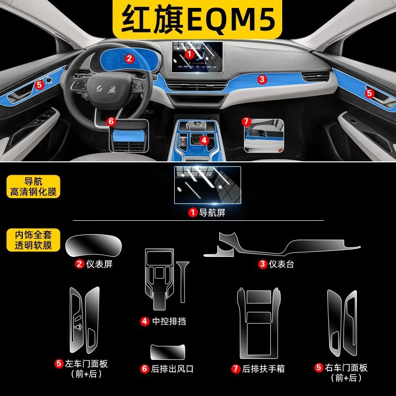 紅旗 EQM5 特殊インテリアフィルムナビゲーション画面強化中央制御フィルムカー用品改造部品アクセサリー