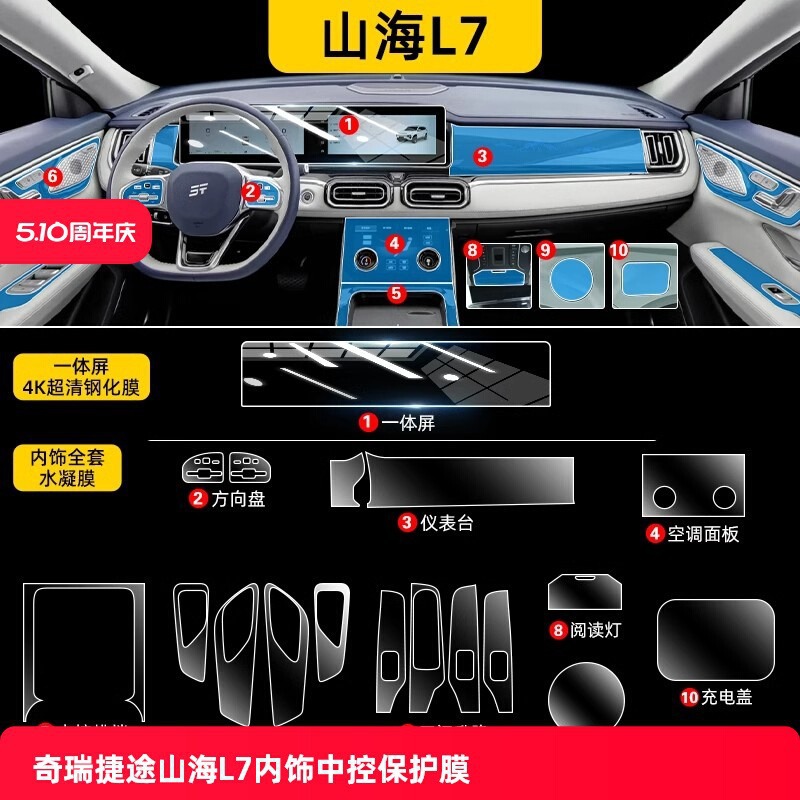Chery Jietu Shanhai L7 インテリア保護スクリーン強化フィルム中央制御フィルム車内装飾用品修正アクセサリー